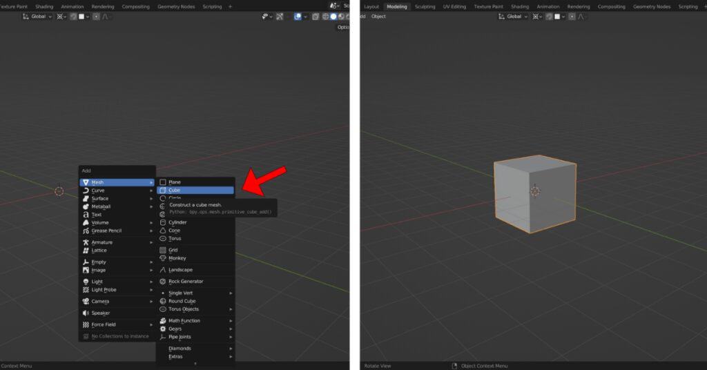 We start with adding a Cube to the viewport(SHIFT+A, If it’s not there for some reason already)