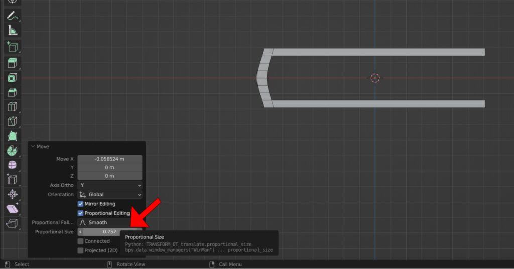 Adjust the Circle and Move the selected Edge on the X-Axis towards the Left.