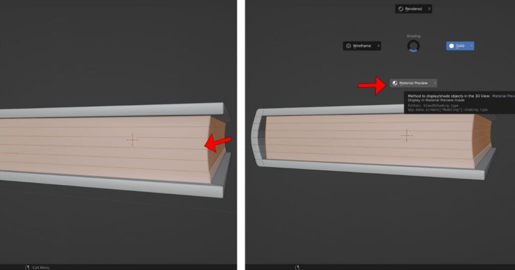Enter Edit Mode and select the faces of the papers by double-clicking on the edges of each face, This action will select each edge loop. After that hold (Z) and go to “Material Preview”.