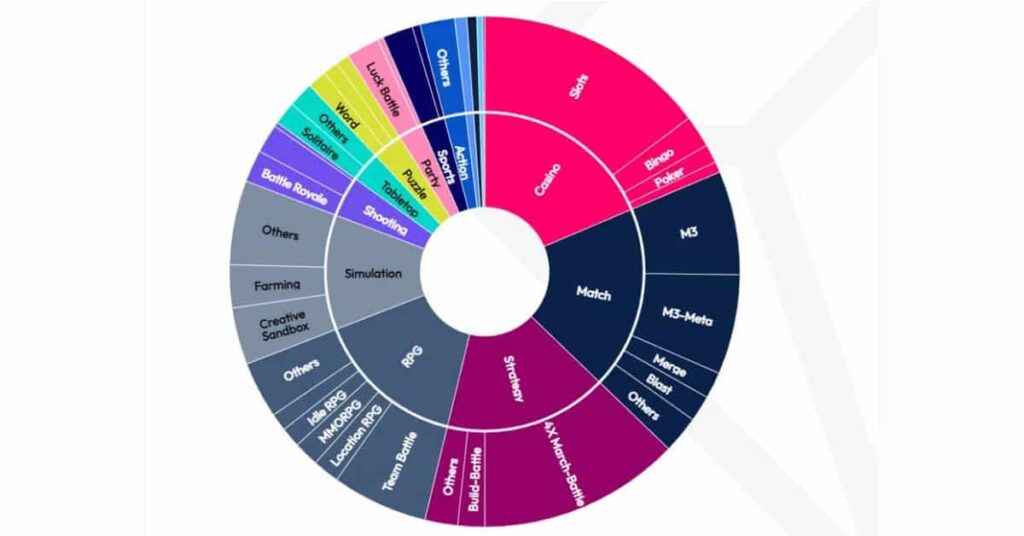 Here is another chart showing the different mobile game genres and the revenue they produce every year.