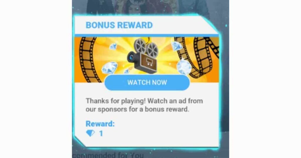 Then there are reward ads. These are usually the most acceptable by players as they are voluntary. For example, if a player needs a life, they can choose to wait until it replenishes, buy one, or watch an ad to get one. These ads can be used for more lives, currency, time, or bonus items.