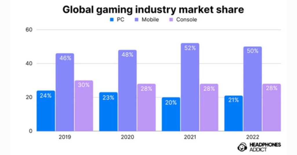 While this sounds like a large number, and it definitely is, PC games actually have the lowest percentage of market share compared to mobile and console games. While they tend to be somewhat close to console games, they are still regularly at the bottom when it comes to market shares.