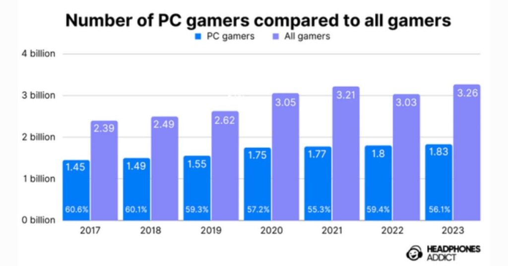 Like most other games, the number of PC gamers is steadily increasing every year. The growth has slowed down a little since the global pandemic lifted, but the industry is still seeing more and more PC gamers every year and the growth is expected to continue.