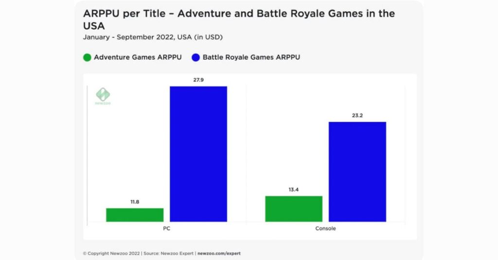 - The Average Revenue per User for PC games is higher than consoles at $2.2