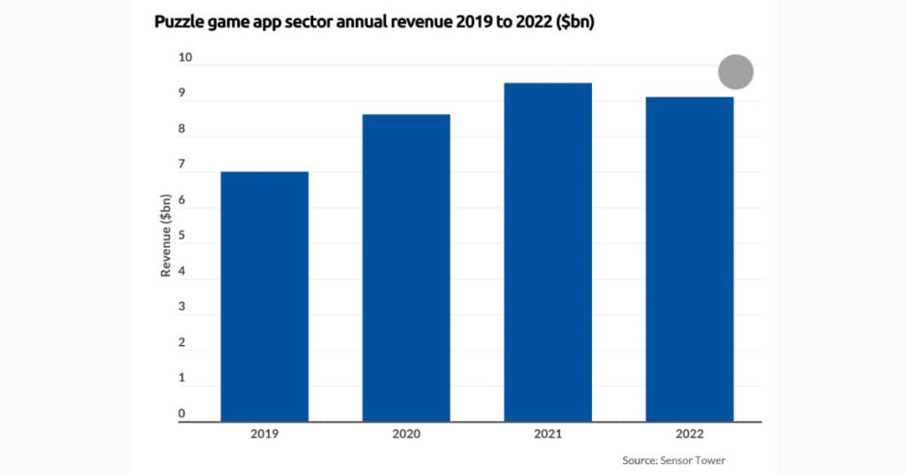 Graph showing the amount of money players spend on mobile puzzle games and how the numbers increased from 2020 to 2022 from SensorTower