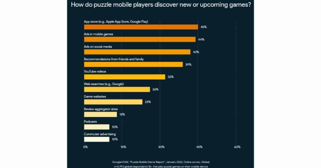 A graph showing ways that people find and start playing new mobile puzzle games from GamesWithGoogle