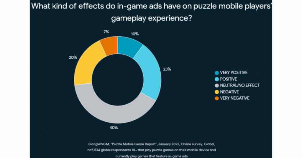 This is especially true for players who understand developers need to make money and are willing to deal with ads instead of spending their own money. However, 27% of players feel more negative about a game when there are ads involved.