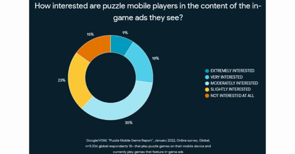 A visual of a survey showing how interested puzzle gamers are with the information they see on in-game ads from GamesWithGoogle