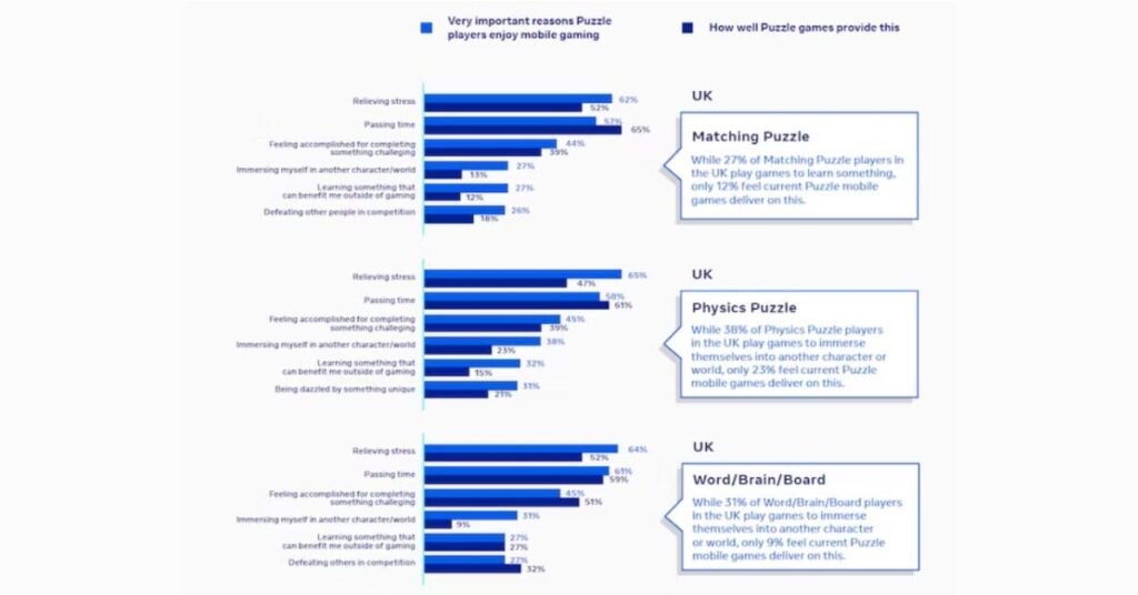 It also has the additional purpose of showing you how well puzzle games meet these demands, according to those actually playing. If you want your game to stand out from others, you want to try and find a way to meet the top reasons listed below.